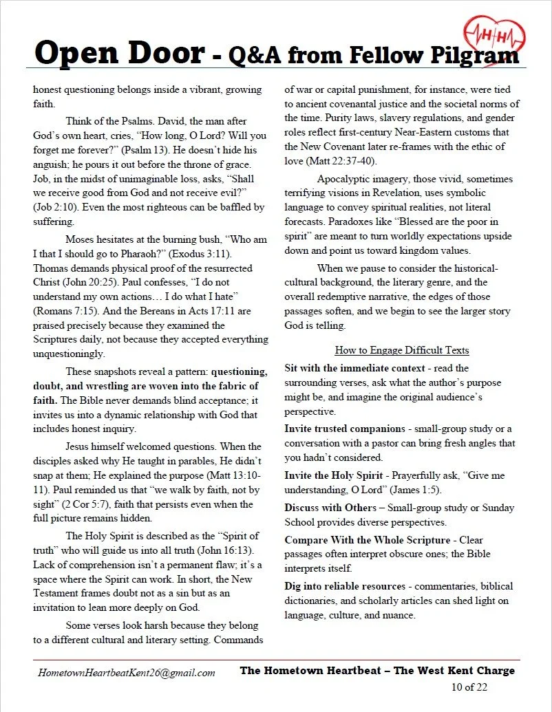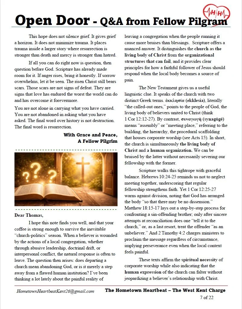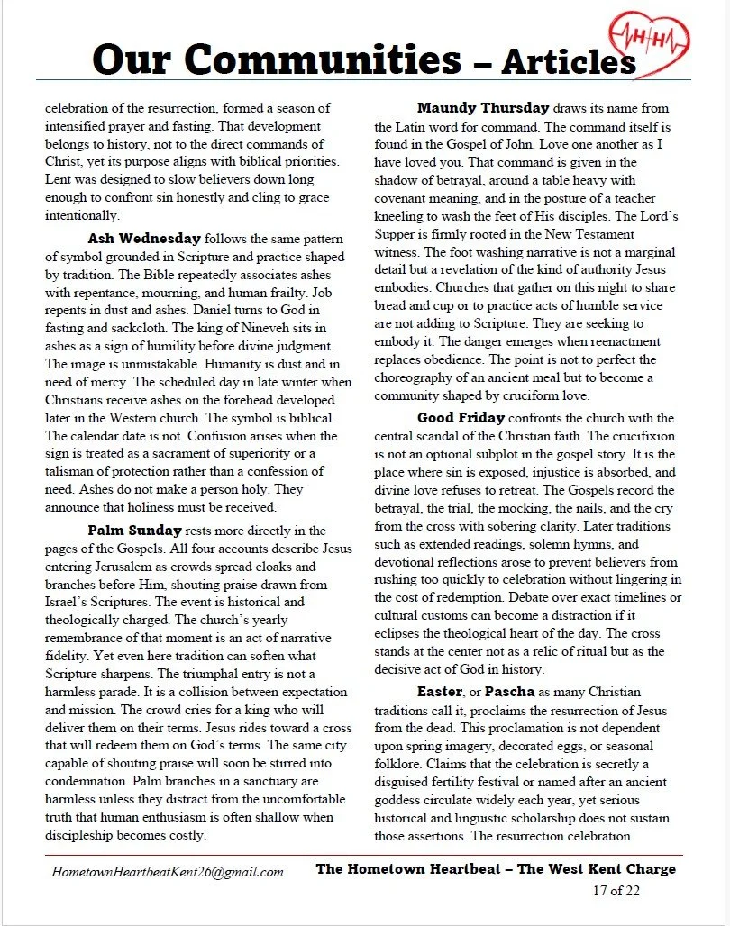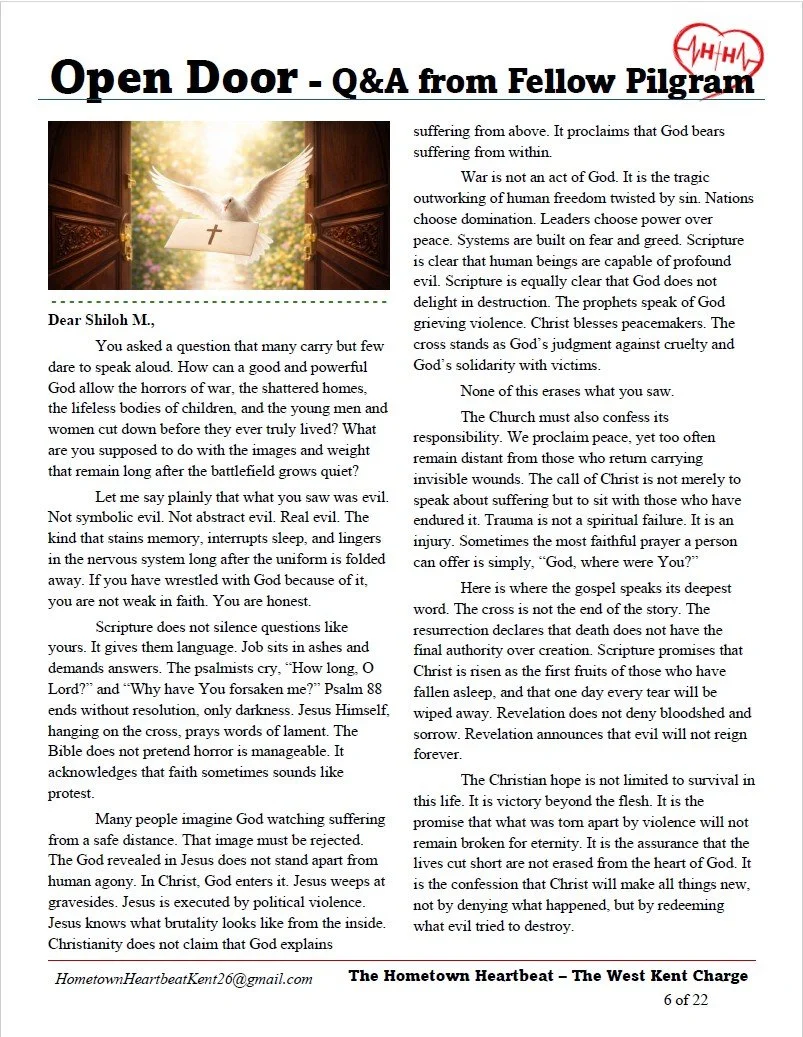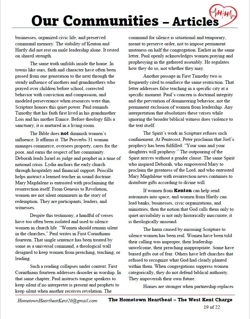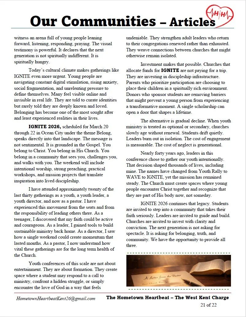 March 2026 Mar 6 Written By Kenton UMC www.facebook.com/KentonUMChurchwww.KentonUMC.orgwww.facebook.com/hartlyumc hvfc.hallrentals@gmail.comhttp://abeautifullifesanctuary.net/adoption-app/ www.statefireschool.delaware.govBreakfast at Rudy’s: A Cup of Joe, A Plate of Grief, Covered by a Generous Grace by Rebecca CollisonMoments for Mend And Mind by Dan Paddack HometownHeartbeatKent26@gmail.com Here is a downloadable version of March 2026 Newsletter:Newsprint Large Print Kenton UMC